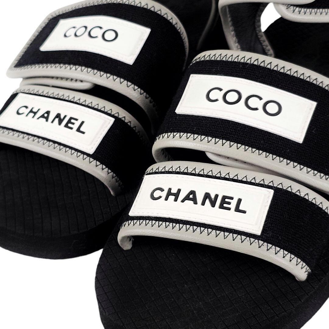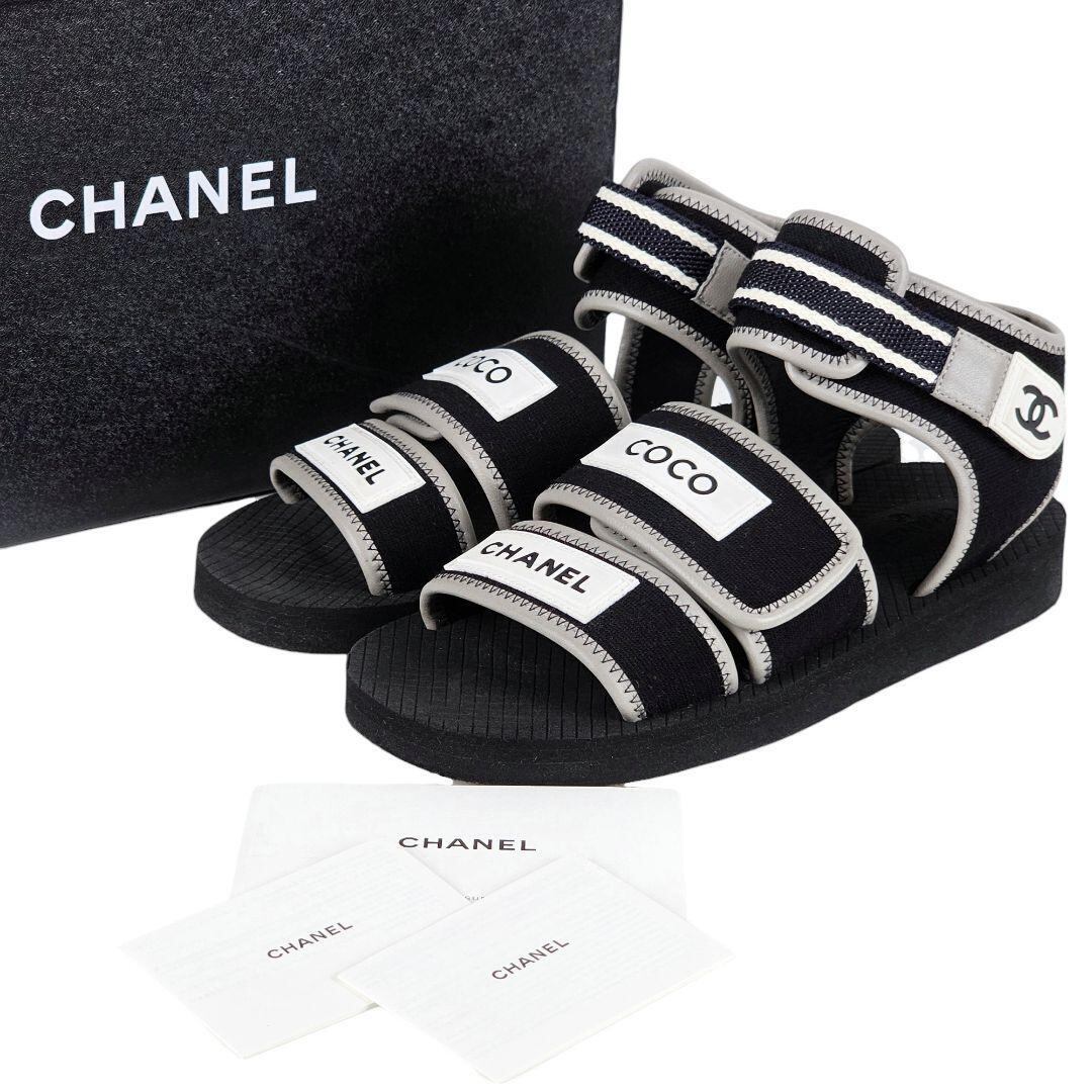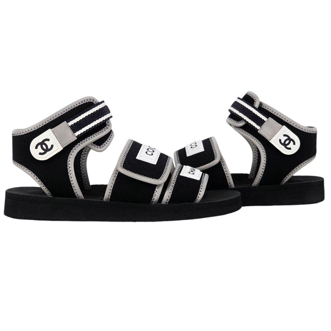 美品 シャネル CHANEL ココロゴ ベルクロ ストラップ サンダル ブラック