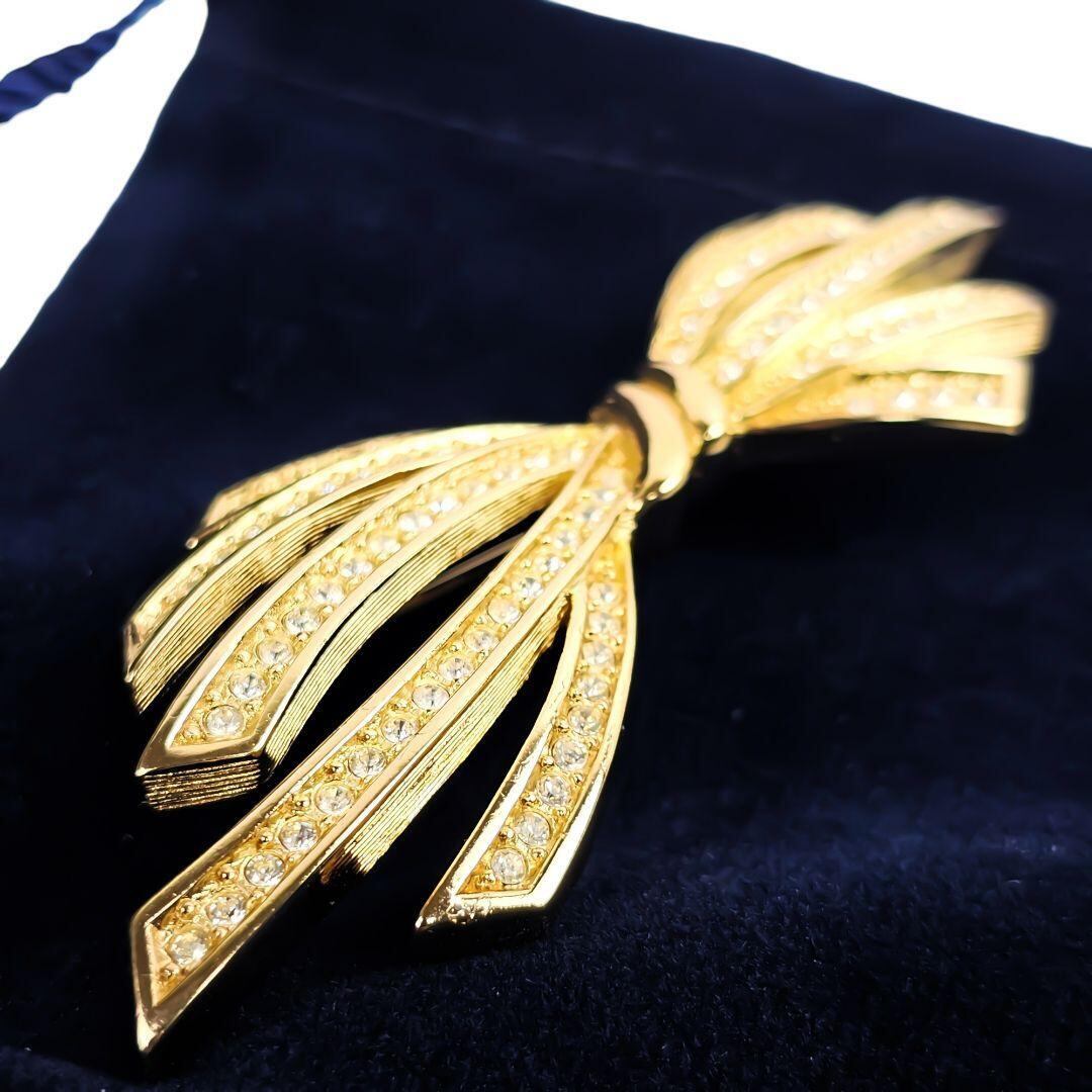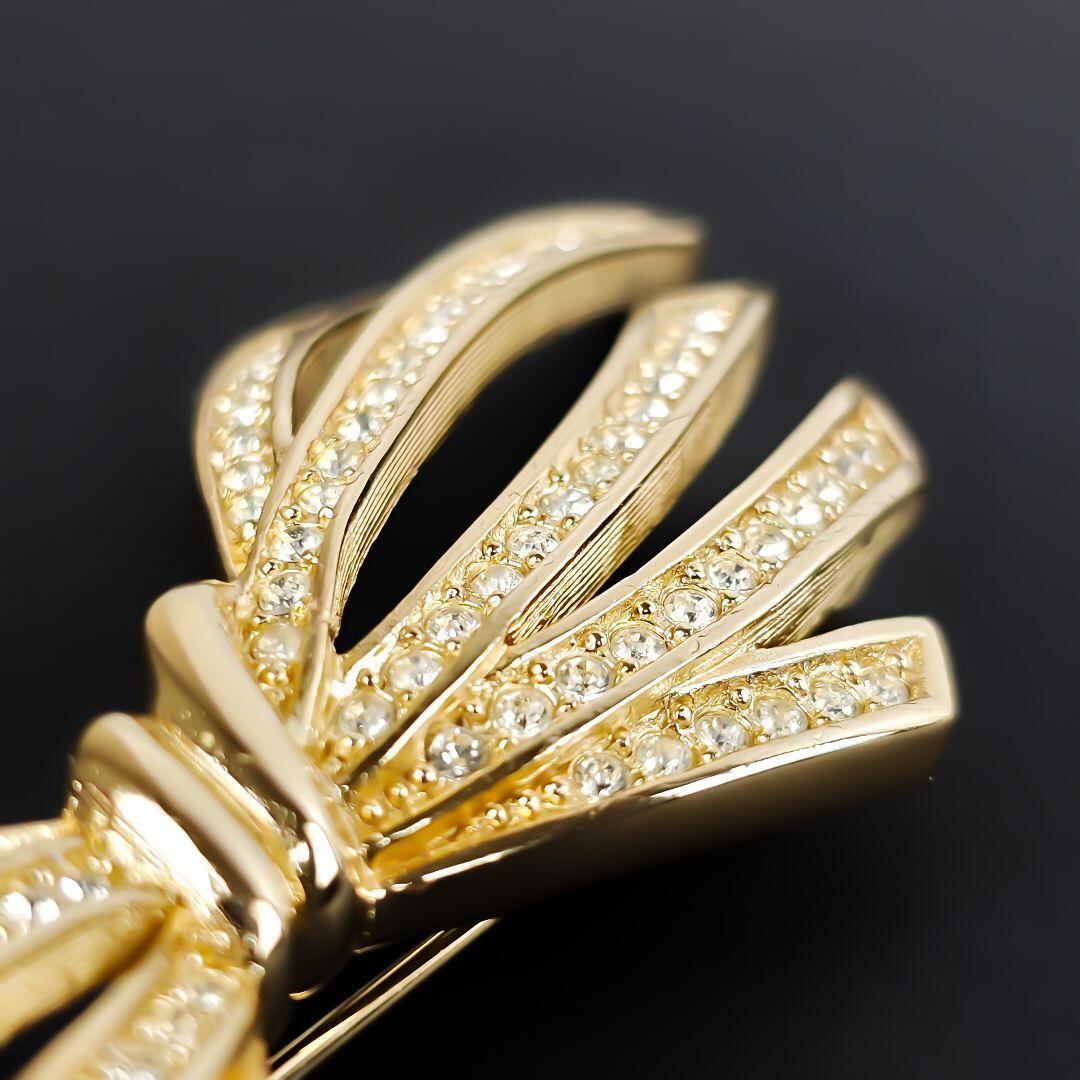 美品 クリスチャンディオール Christian Dior ラインストーン ゴールド ブローチ