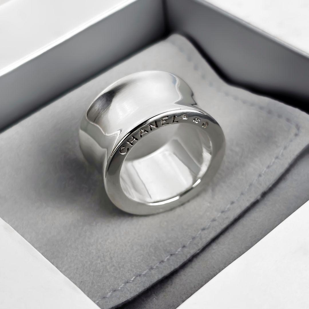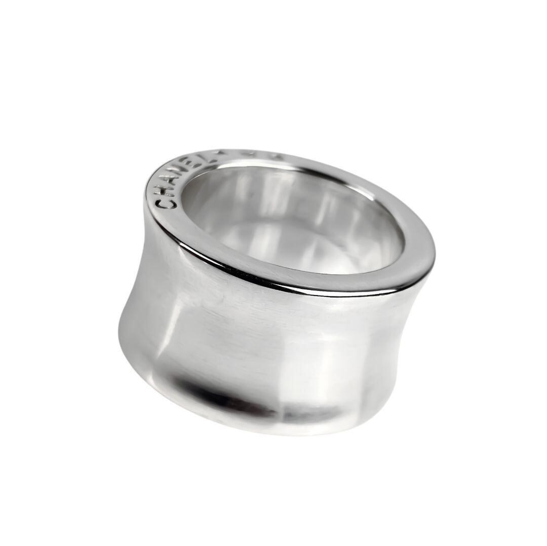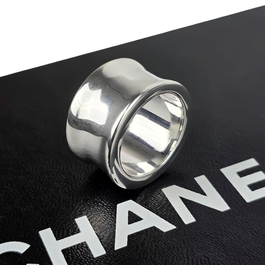 美品 シャネル CHANEL ロゴ刻印 ワイド リング 指輪 SV925