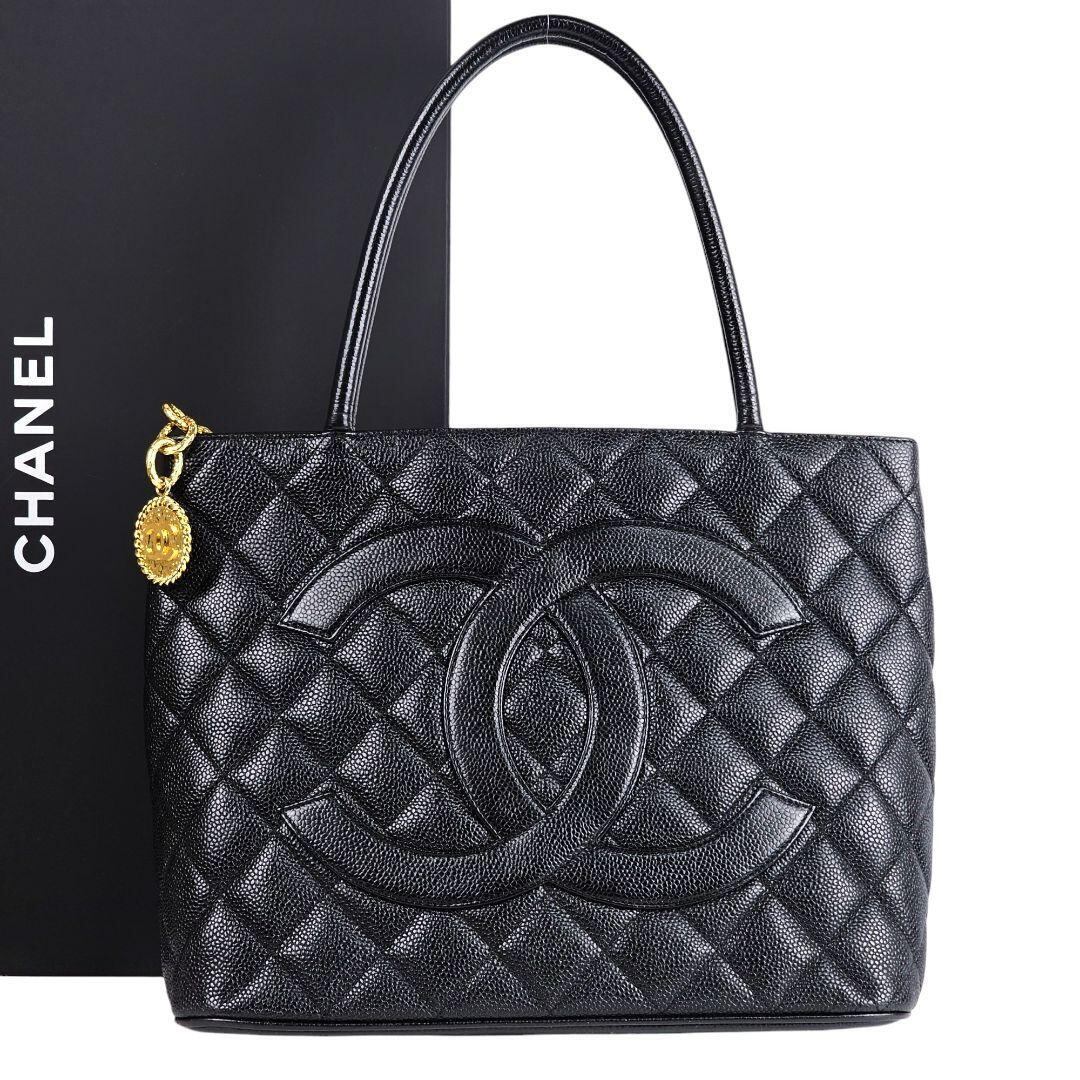 美品 シャネル CHANEL 復刻トート キャビアスキン コールドチャーム