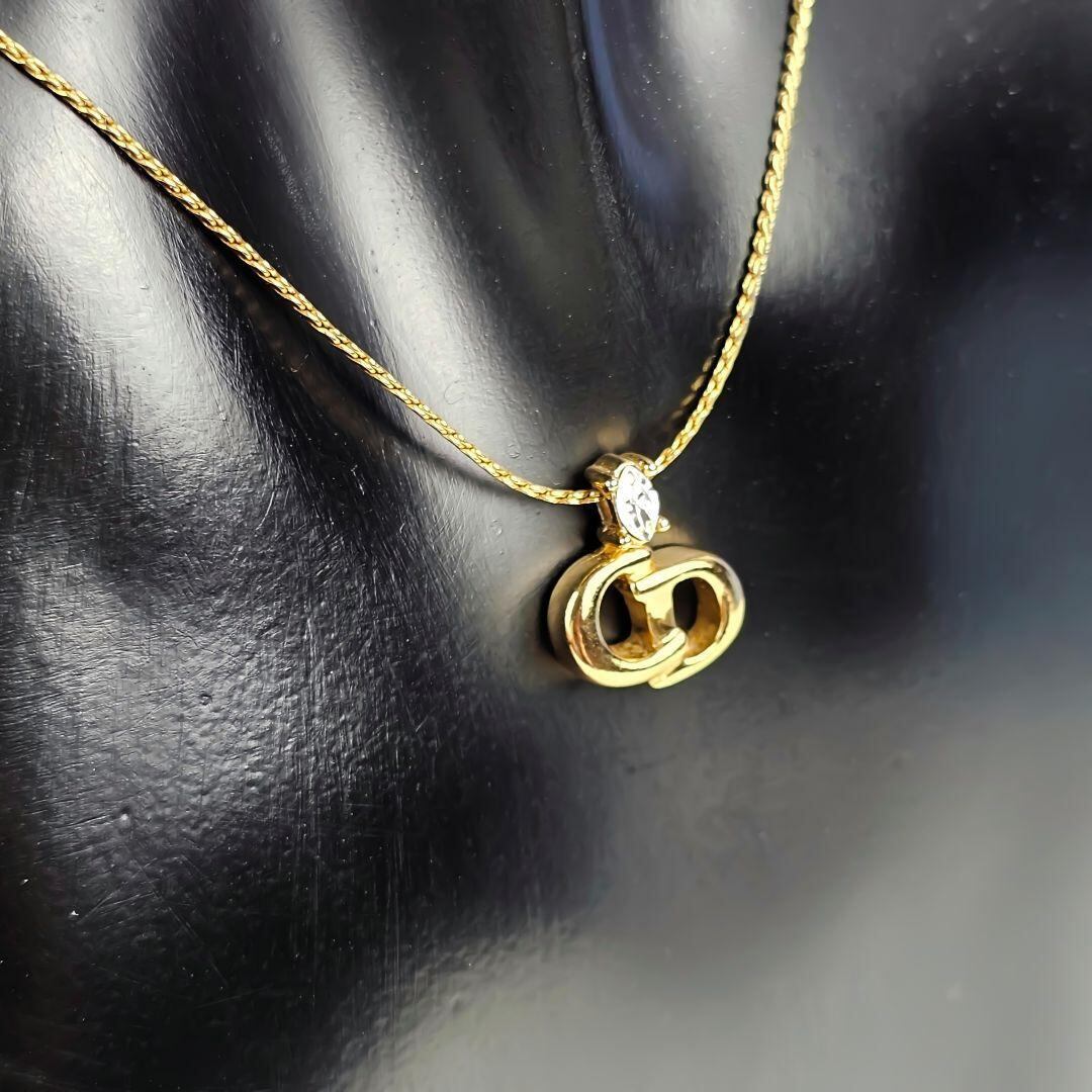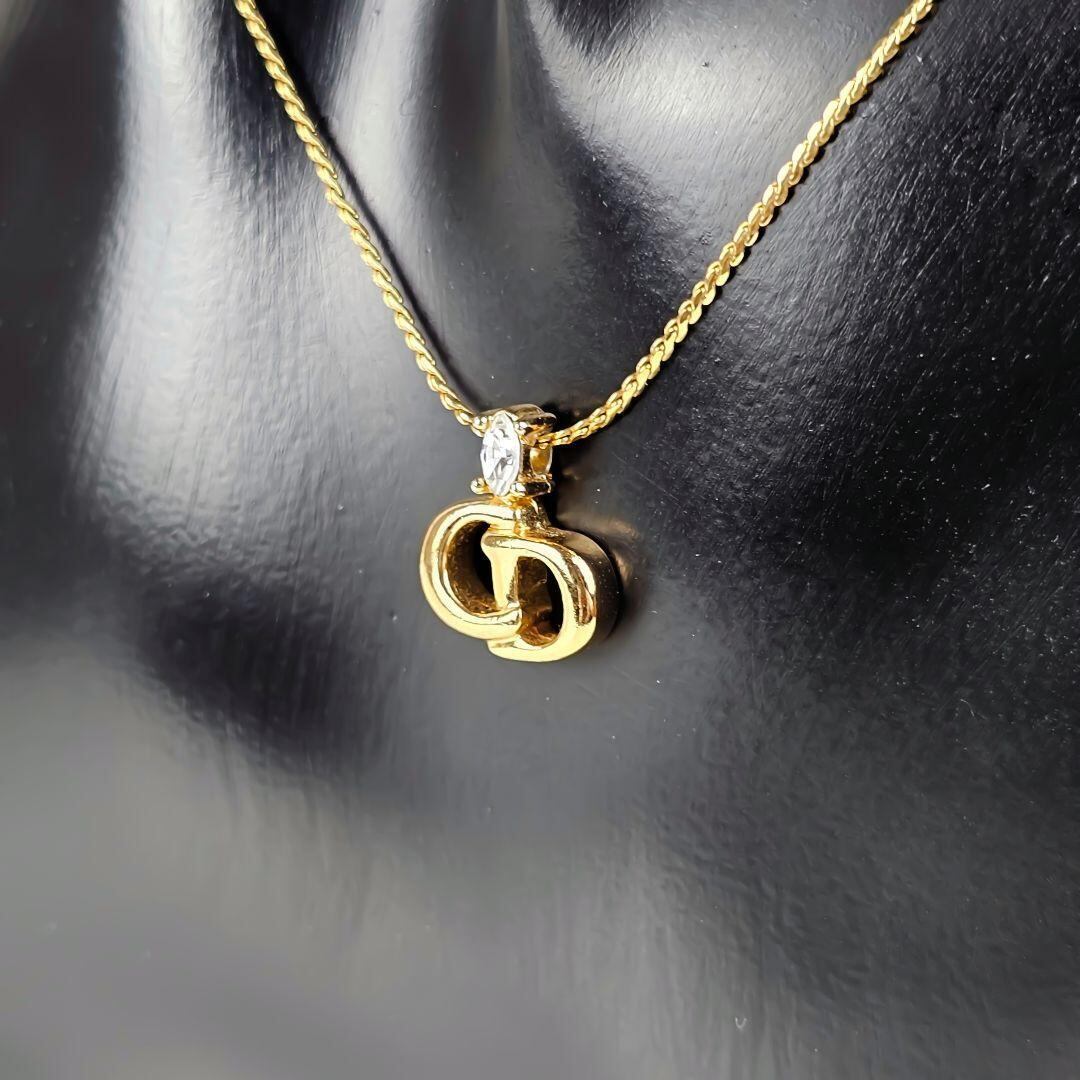 美品 クリスチャンディオール Christian Dior CDロゴ ラインストーン ネックレス