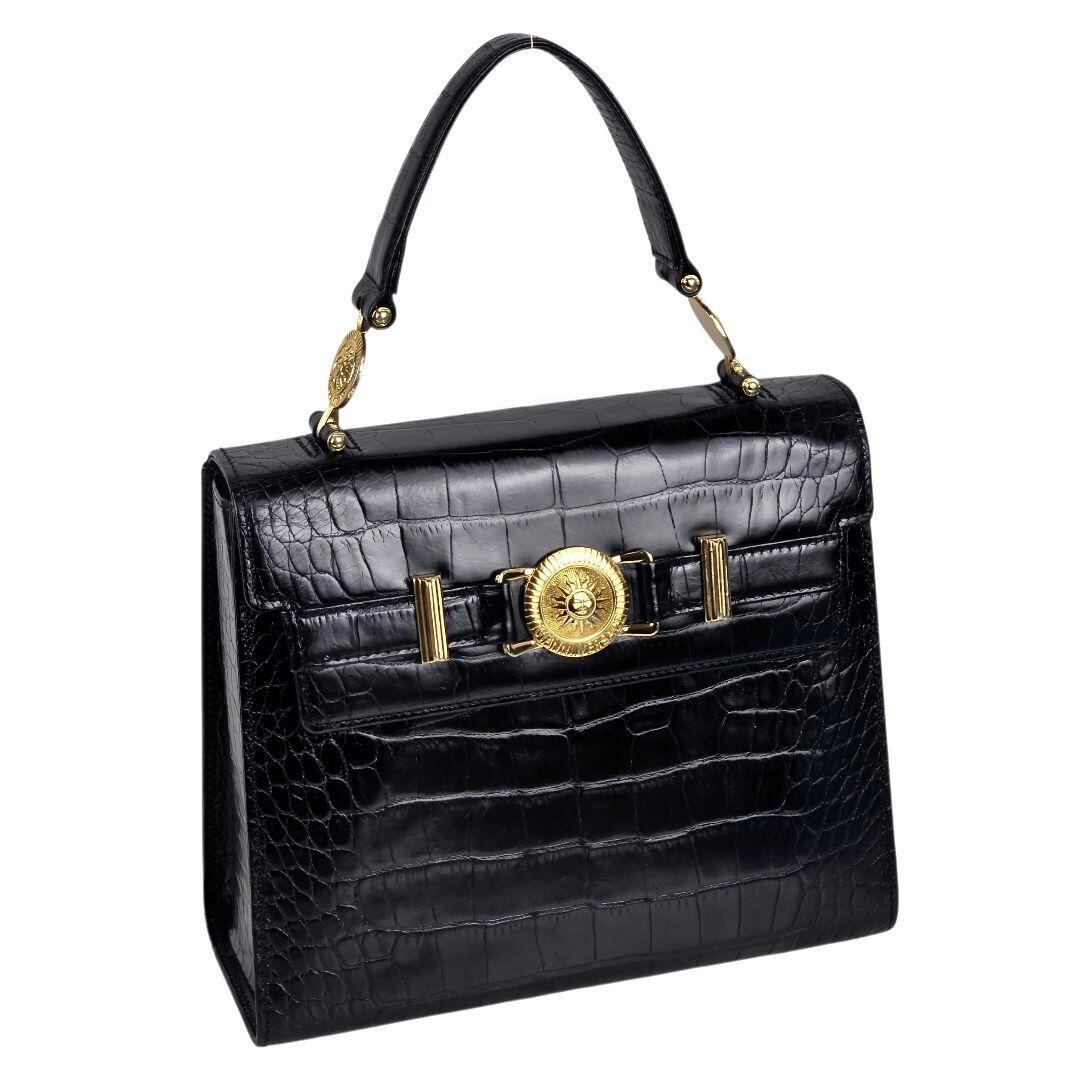 美品 ヴェルサーチ VERSACE サンバースト クロコ型押し ハンドバッグ