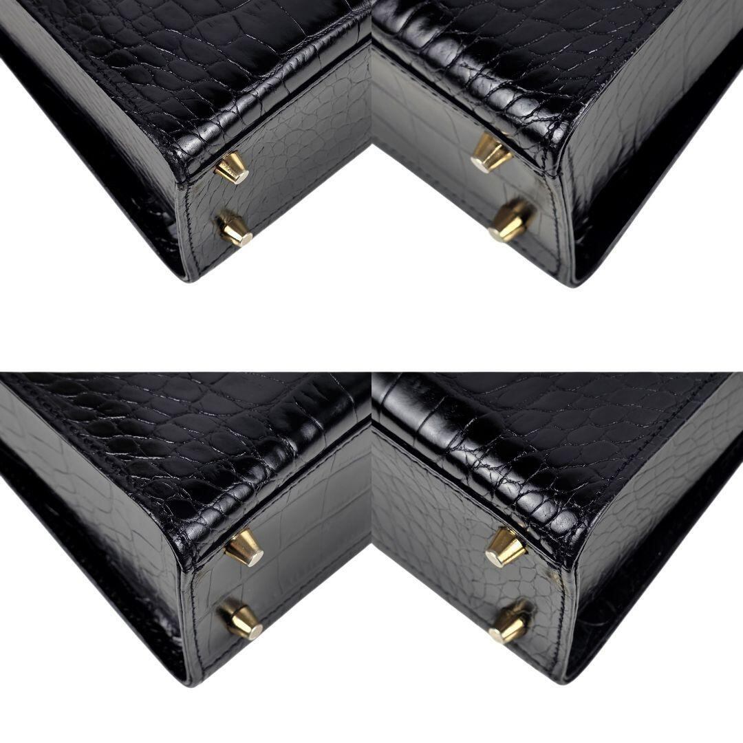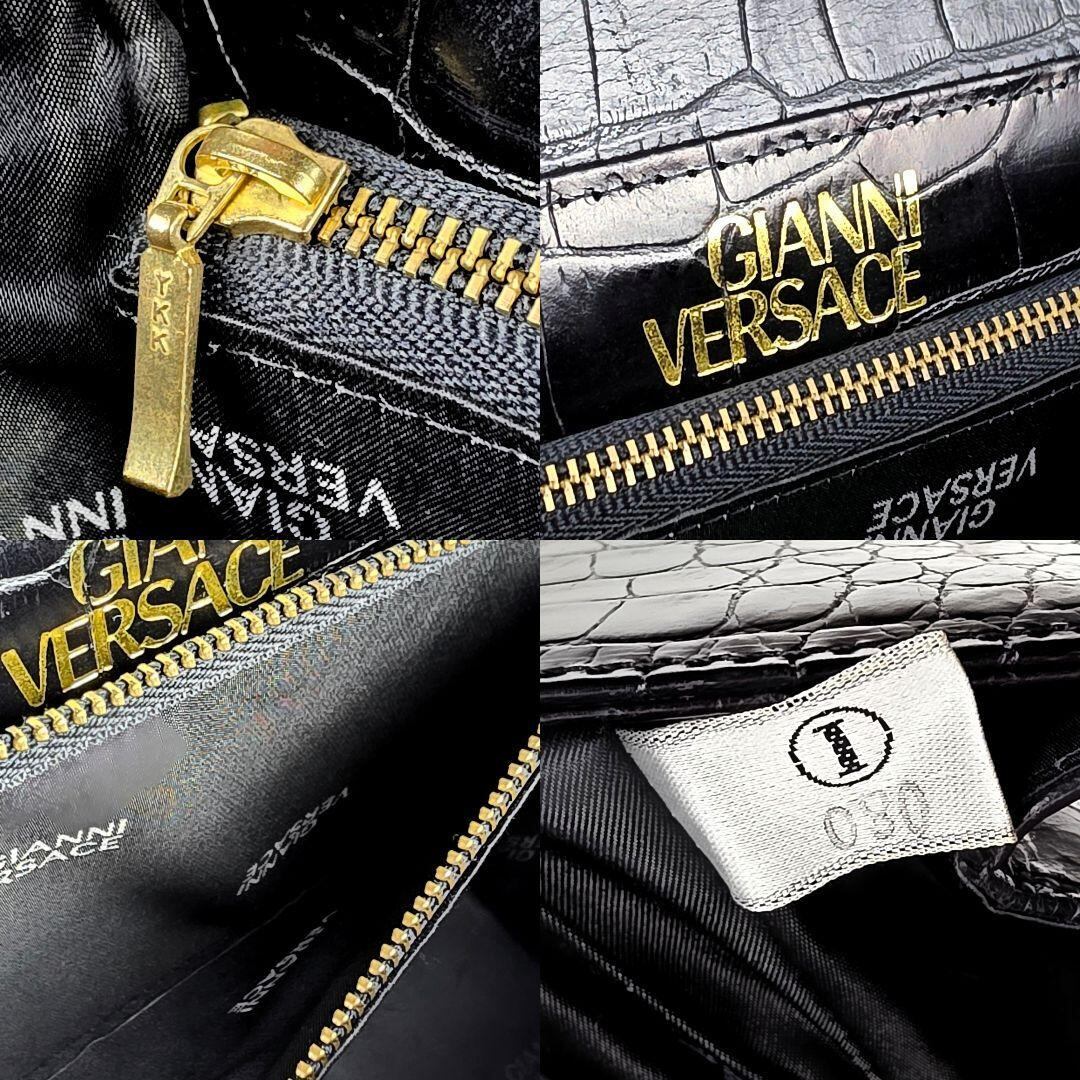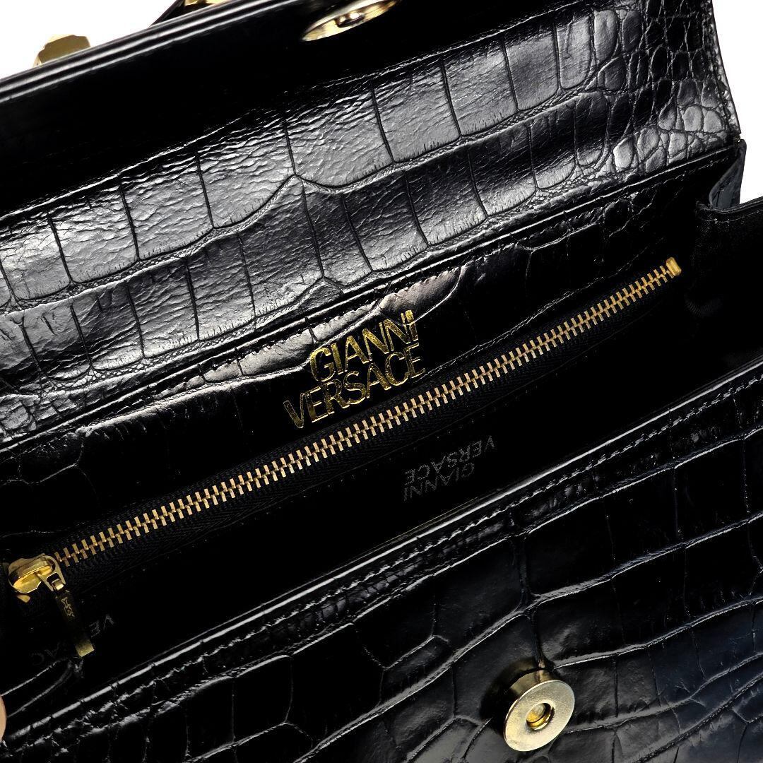 ブランド ジャンニ ヴェルサーチ GIANNI VERSACE サンバースト クロコ型押し ハンドバッグ ブラック