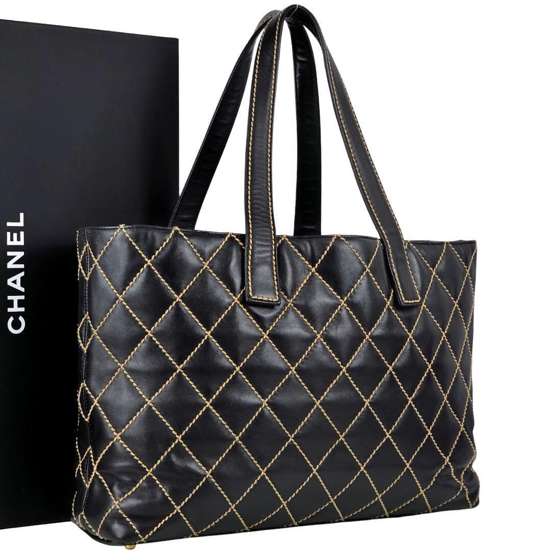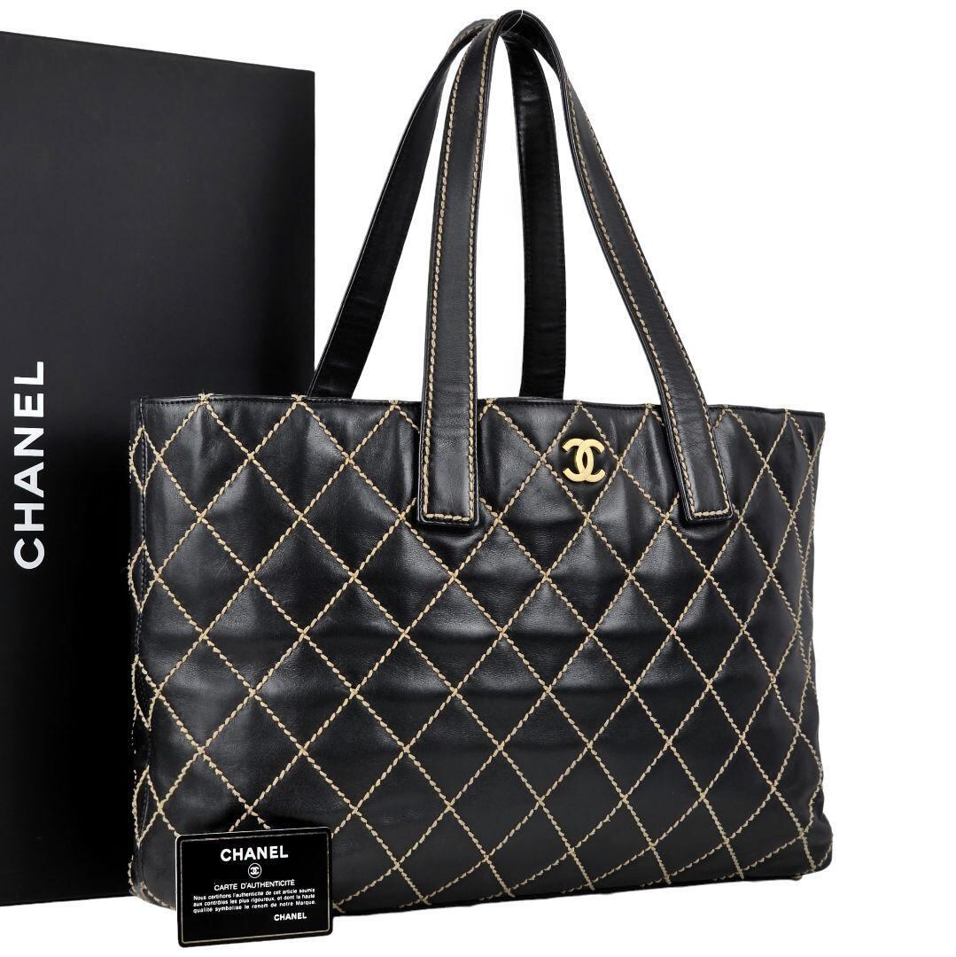 美品 シャネル ワイルドステッチ ココマーク レザー ショルダー トートバッグ