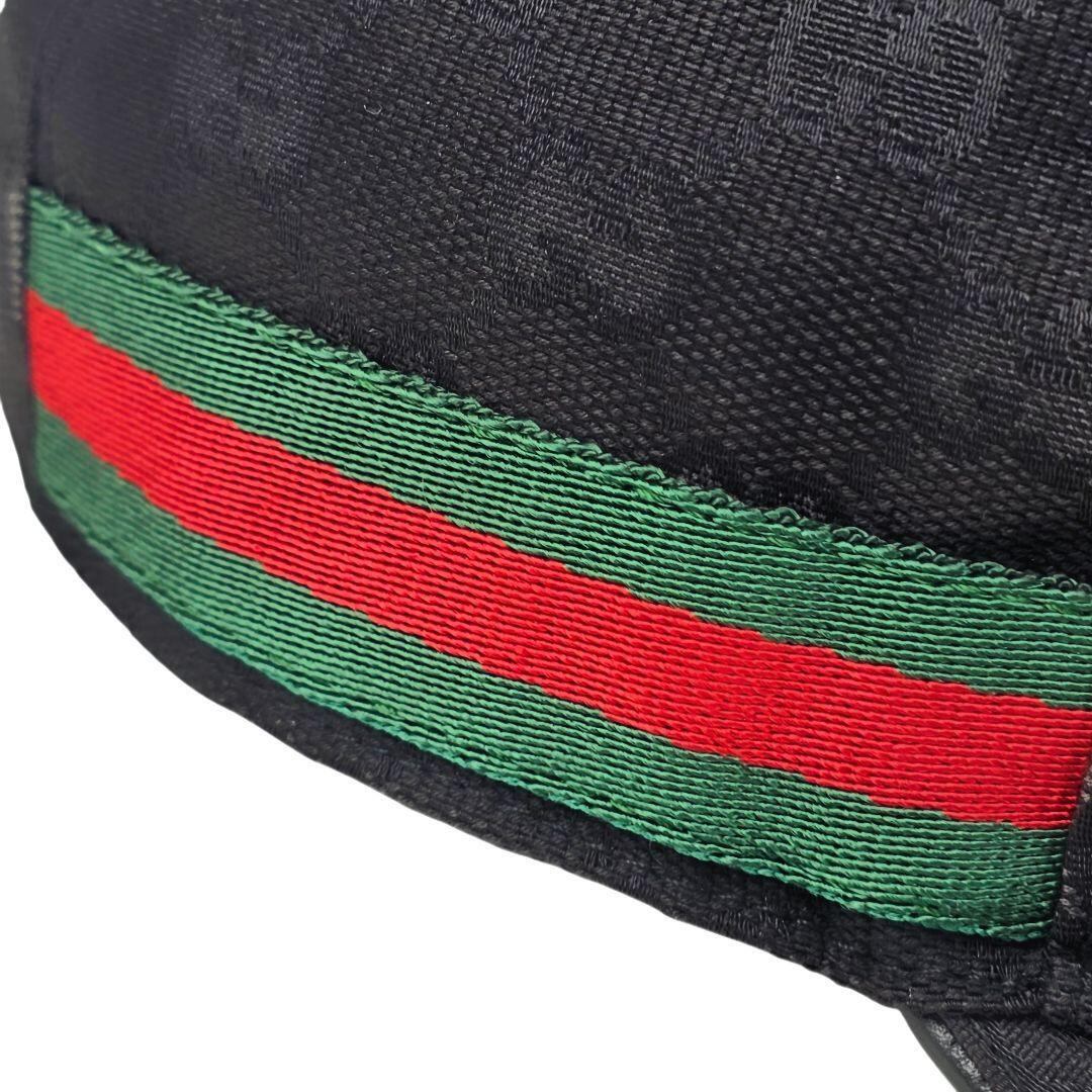 美品 グッチ GUCCI ウェブ ストライプ GGキャンバス ベースボールキャップ ブラック