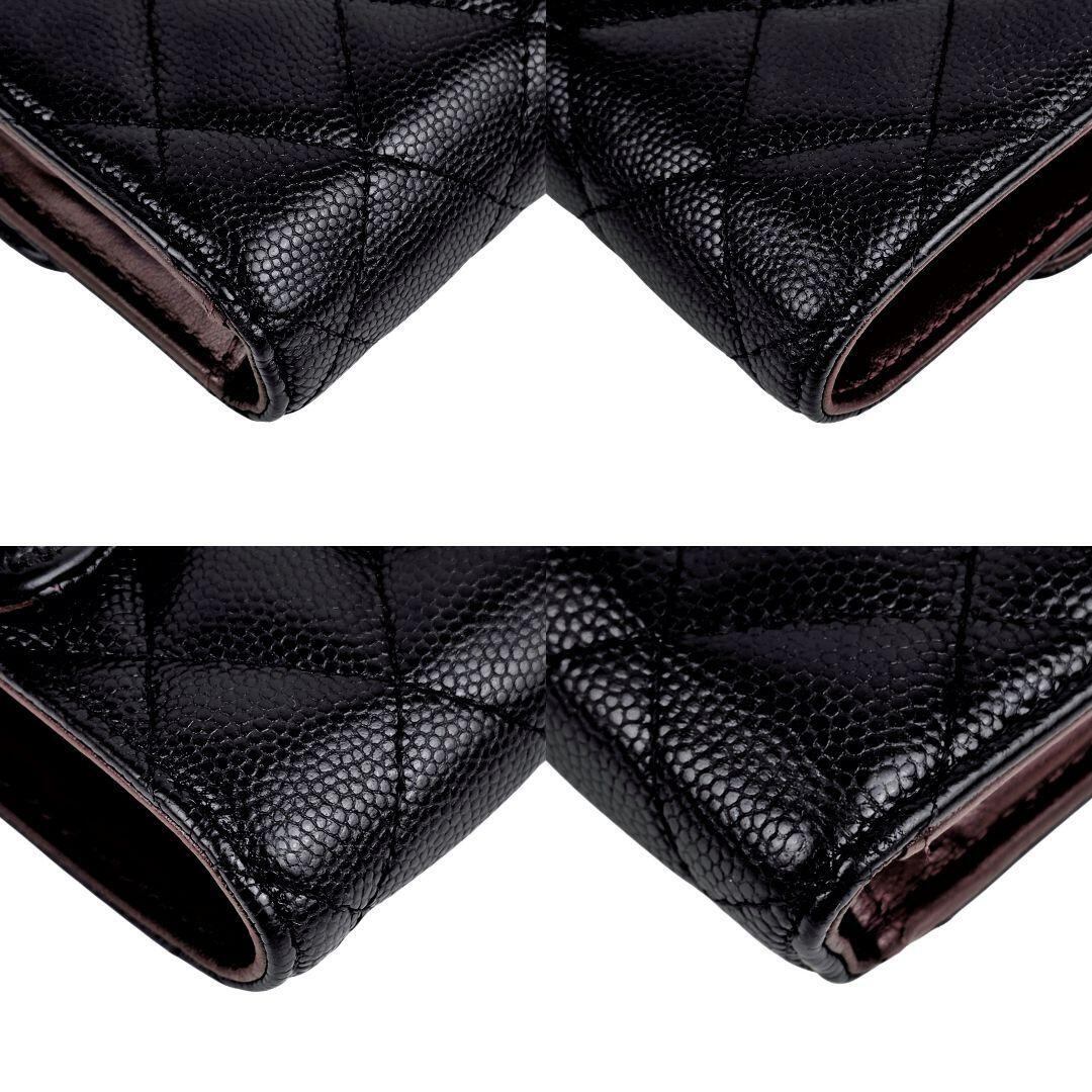 美品 シャネル キャビアスキン クラシック スモール ウォレット 三つ折り財布