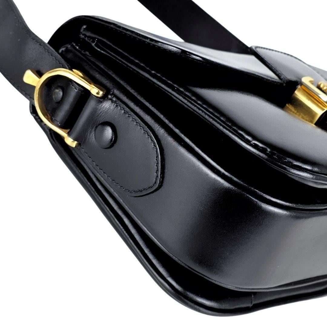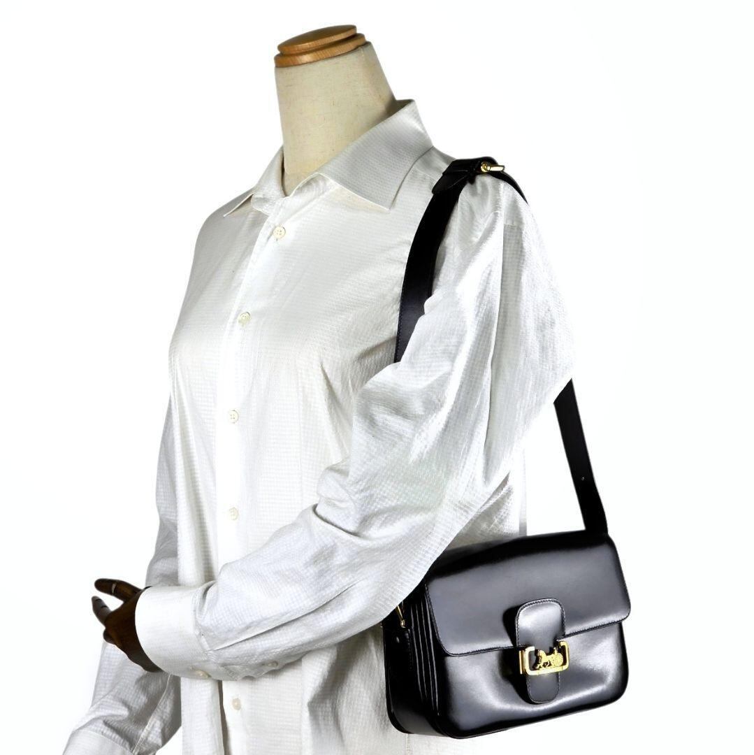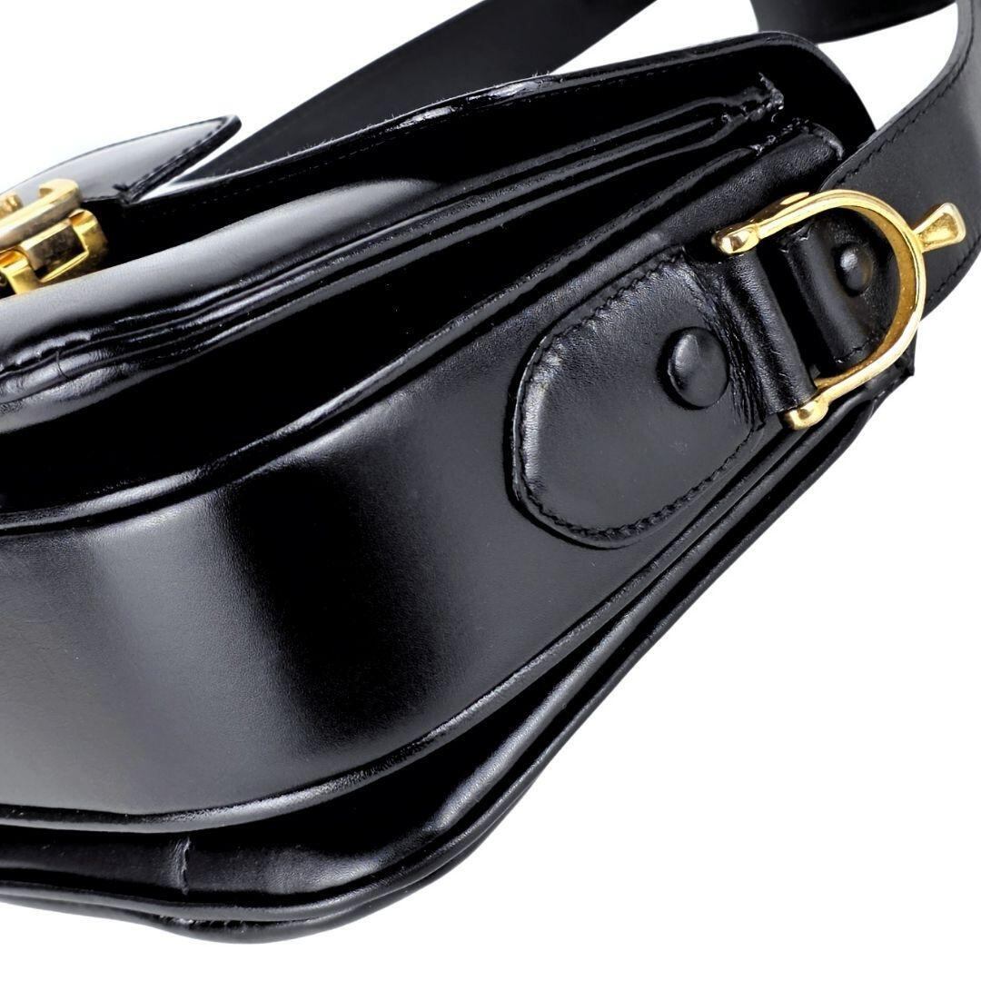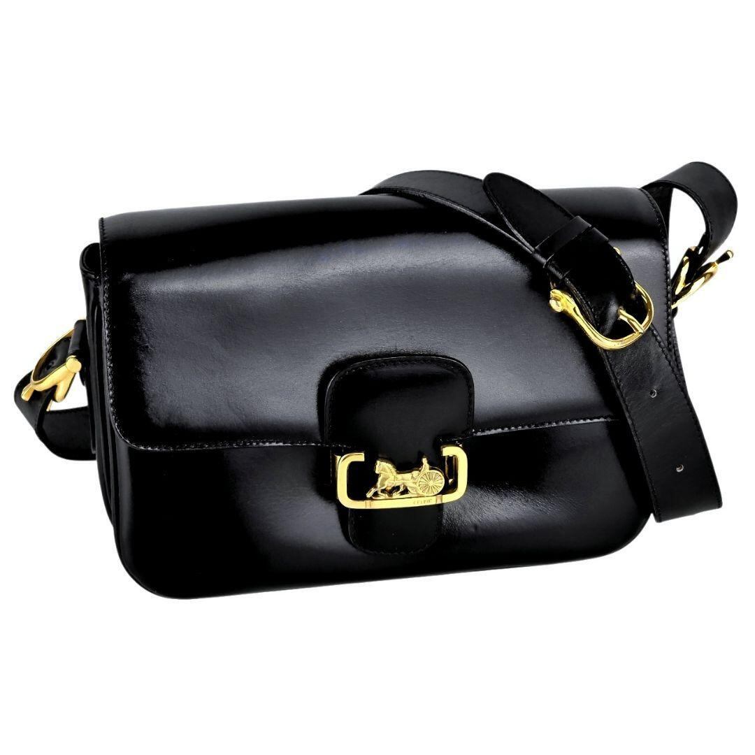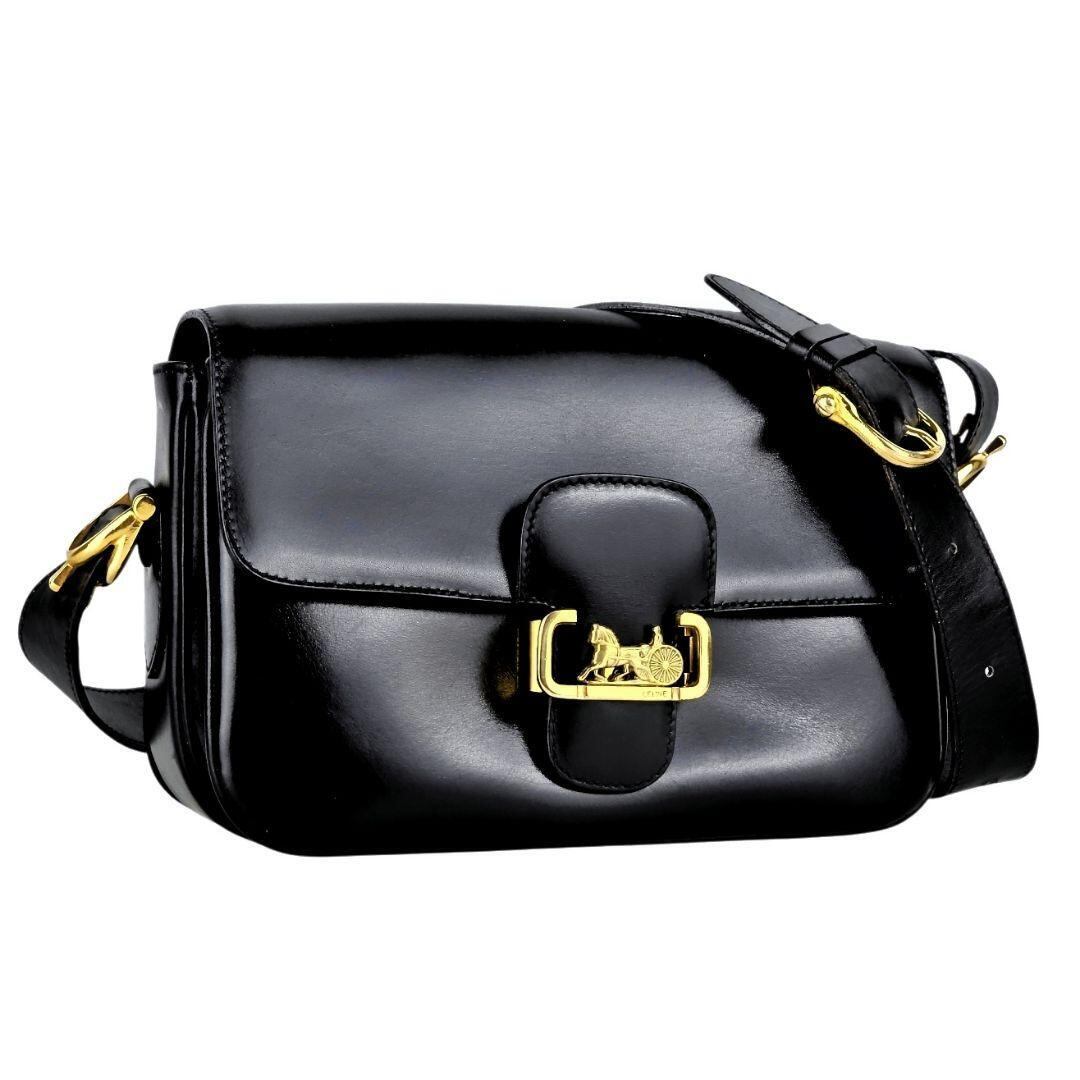 美品 セリーヌ CELINE 馬車金具 レザー ショルダーバッグ ブラック