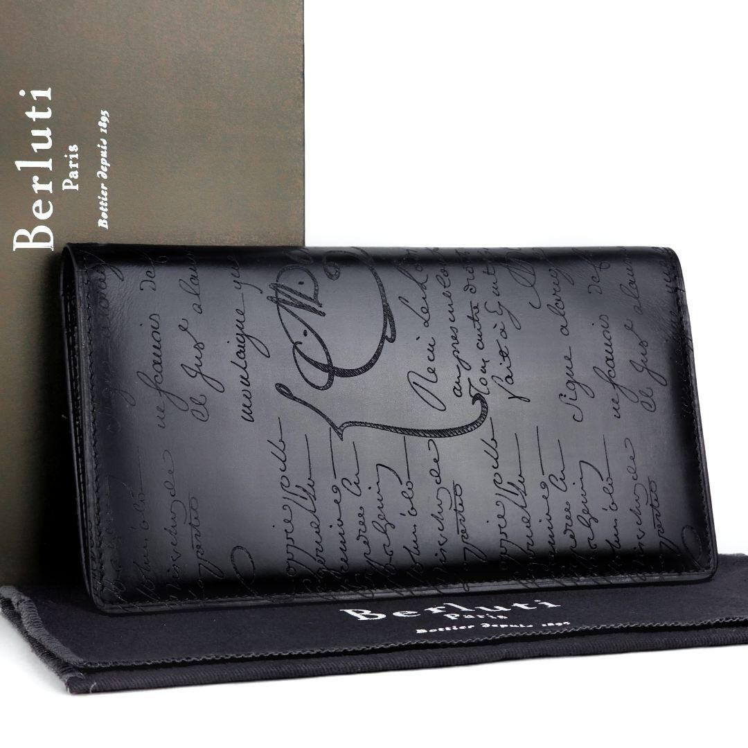 美品 ベルルッティ カリグラフィ エベネ スクリットレザー 二つ折り 長財布